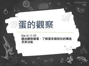 藉由觀察雞蛋,了解蛋各個部位的構造及其功能