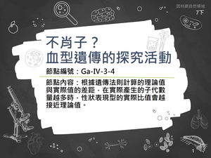 學習內容:Ga-Ⅳ-3 人類的 ABO 血型是可遺傳的性狀。