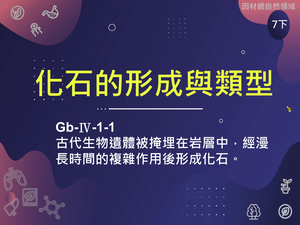 學習內容:Gb-Ⅳ-1 從地層中發現的化石,可以知道地球上曾經存在許多的生物,但有些生物已經消失了,例如:三葉蟲、恐龍等。
