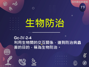 利用生物間的交互關係,達到防治病蟲害的目的,稱為生物防治。