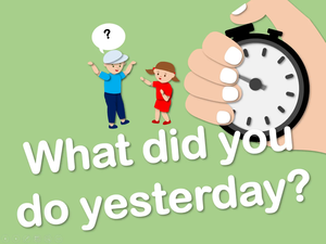 本影片所學句型與休閒活動相關。先透過圖片學習動作動詞並說明過去式的時態變化。再練習問句What did you/he/she do yesterday?及回應句I/He/She/They _休閒活動_ yesterday.。最後透過閱讀短文內容及練習題,讓學生熟悉句型。