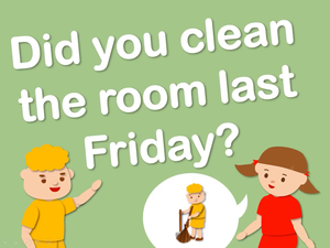 本影片所學句型與時間及休閒活動相關,透過男孩一週的休閒活動的安排,練習句型 Did you _休閒活動_ last Friday?及Yes, I did./No, I didn't. I _休閒活動_ last Friday.。此外,影片中也補充句型Did he _休閒活動_ in the morning?及Yes, he did./No, he didn't. He _休閒活動_in the moring。