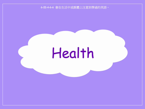 本影片以Jack及Mary維持健康的方法為主題,透過動畫學習日常生活相關的字詞以及現在簡單式和所有格。例句:Mary brushes her teeth./George washes his hands。影片中出現的單字包含:brush their teeth, do exercise, wash their hands, eat healthy food。