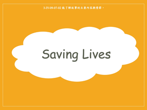 本影片故事主題為Saving Lives,透過故事讓學生了解救生員(lifeguard)的工作內容、時間,並利用練習題檢視學生對故事內容的理解程度。影片中藉由救生員Alan自身的敘述,讓學生認識他的工作內容為在海邊守護大家的安全(keep people safe)以及給予大家避免溺水 (getting drowned)、受傷(getting injured)或是曬傷(getting sunburned)的建議。此外,也介紹Alan的工作時間為星期二到星期六(from Tuesday to Saturday)早上九點到下午五點(from nine to five),以及由於海邊只有在夏季時開放,導致Alan只在夏季時有工作,工作型態屬於不固定(not stable)。議題相關:閱讀素養教育。