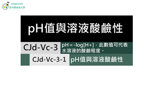 學習內容:CJd-Ⅴc-3 pH=-log[H+],此數值可代表水溶液的酸鹼程度。