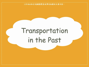本影片主題為Transportation in the Past,讓學生從故事中認識人們過往搭乘的交通工具,並透過練習題檢視學生對故事內容的理解程度。