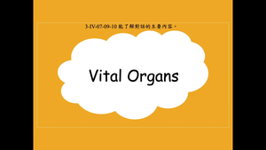本影片所學對話內容為Vital Organs,透過自然課堂中老師與學生間的對話認識人體中四個重要器官(vital organ),分別是大腦(brain)、心臟(heart)、肺部(lungs)以及腎臟(kidneys)。假如缺少了這4個重要器官,人將無法存活。大腦(brain)是人體的控制中樞(control center),負責接收(receives)及傳遞(sends)訊息到其他器官。心臟(heart)則是循環系統中最主要的器官,負責運送血液到全身。肺部(lungs)則是協助我們獲得氧氣(oxygen)和釋放二氧化碳(carbon dioxide)。腎臟(kidneys)則是協助人體產生尿液(urine)並負責排出廢物(waste)。