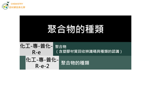 學習內容:化工-專-普化-R-e 聚合物(含塑膠材質回收辨識碼與種類的認識)