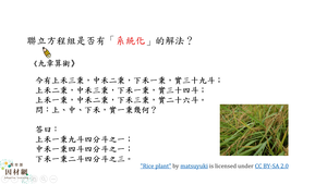 學習內容:A-11A-2 三元一次聯立方程式:以消去法求解,改以方陣表達。用電腦求解多元一次方程組的觀念與示範。
