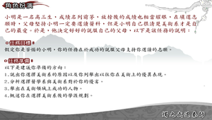 小美是個高三生,正值推甄申請選填大學校系之際。由於小美對文學相當有興趣,所以選填的校系幾乎都是語文類的科系。但小美的父母,卻對小美的選擇不甚滿意,希望小美能選填商管類的科系,將來比較好找工作。假如你是小美,你該如何說服父母,支持自己的想法呢?