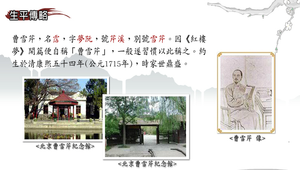 曹雪芹,名霑,字夢阮,號芹溪,別號雪芹。因紅樓夢開篇便自稱「曹雪芹」,一般遂習慣以此稱呼之。約生於清康熙五十四年(一七一五),時家世鼎盛。
