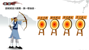 依照描述,以拉弓射箭瞄準對應的歇後語箭靶。讓學習者瞭解歇後語代表之涵義。