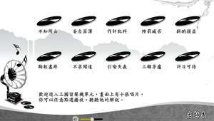 藉由點選唱片,可個別瞭解與三國相關的成語說明。