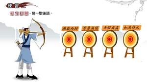 依照歇後語的描述,以拉弓射箭瞄準對應的動詞箭靶。