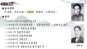 連橫,初名允斌,字武公,號雅堂,又號劍花。