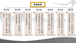 引出「詩眼」或「文眼」,並分析課文起承轉合架構,點明每段概要。