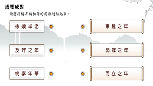將指稱年齡相等的成語做連線配對。