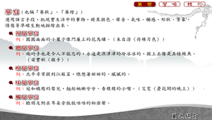 解析本課所使用的修辭法;包含:摹寫、譬喻、轉化。
