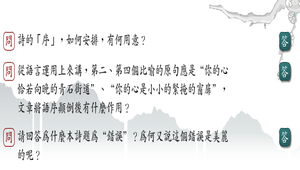 1.詩的「序」,如何安排,有何用意?2.從語言運用上來講,第二、第四個比喻的原句應是“你的心恰若向晚的青石街道”“你的心是小小的緊掩的窗扉”,文章將語序顛倒後有什麼作用?3.請回答為什麼本詩題為“錯誤”?為何又說這個錯誤是美麗的呢?4.寫思婦對遠行丈夫思念的詩稱為閨怨詩,寫遠行的丈夫對家中的妻子和親人的思念的詩又叫做什麼呢