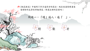 依據題目所示,點選正確的通同字。讓學習者能懂得辨別通同字。