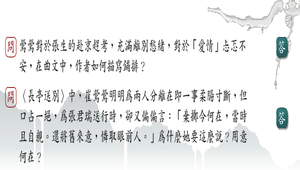 1.鶯鶯對於張生的赴京趕考,充滿離別愁緒,對於「愛情」忐忑不安,在曲文中,作者如何描寫鋪排?2.長亭送別中,崔鶯鶯明明為兩人分離在即一事柔腸寸斷,但口占一絕,為張君瑞送行時,卻又偏偏言:「棄擲今何在,當時且自親。還將舊來意,憐取眼前人。」為什麼她要這麼說?用意何在?3.〈長亭送別〉【四煞】【這憂愁訴與誰?相思只自知,老天不管人憔悴。淚添九曲黃河溢,恨壓三峰華岳低。到晚來悶把西樓倚,見了些夕陽古道,衰柳長隄。】王實甫深刻描述了鶯鶯的閨怨之思,請問作家使用了何種技巧?