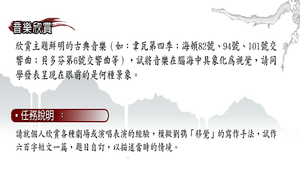 請就個人欣賞各種劇場或演唱表演的經驗,模擬劉鶚「移覺」的寫作手法,試作六百字短文一篇,題目自訂,以描述當時的情境。