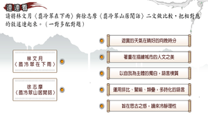 將林文月〈翡冷翠在下雨〉與徐志摩〈翡冷翠山居閒話〉二文做比較,把相對應的敘述連起來。