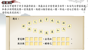 依據絕句的格式,將文字填補到空位,將宋代文學家蘇軾和秦少游間的頂真詩完成。