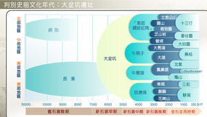 大坌坑遺址位於臺北縣,包含多層的史前文化層,除了大坌坑文化以外,還有後來的圓山文化層、植物園文化層,以及十三行文化層。 按照年代先後,大坌坑、圓山、植物園、十三行這幾個文化層依序應為:大坌坑、圓山、植物園、十三行。