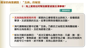 明末鄭氏的海陸「五商」與東西洋船隊為出名的走私船隊,陸上「五商」手下有各路合作的商人,而海上「五商」在廈門設有各商行,負責向海外銷售與進口商品,他們擁有龐大軍火與進步的設施,可抵抗官方追捕。