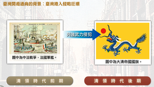清領時代前期,臺灣對外的國際貿易是一種閉鎖的狀態 ,臺灣只以稻米、蔗糖交換中國大陸的日常用品,臺灣與大陸形經濟互補的關係,成為中國大陸經濟圈的一環。 清領時代後期,列強挾其船堅砲利入侵中國,因此清廷簽訂下許多不平等條約;而因為臺灣地理位置優越,為往來東北亞及東南亞的交通樞紐。又臺灣的雞籠富藏煤礦,並盛產樟腦等具有經濟價值的物產,成為列強覬覦的目標,清廷在條約的約束下,將臺灣開港通商。