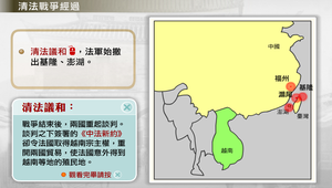 法國為挾制清廷讓步,將戰線延伸到中國沿海。淮軍名將劉銘傳奉命渡臺督辦軍務,置重兵於北部基隆、滬尾,嚴防法軍襲擊。後來,法軍司令孤拔毀福州馬尾船廠,企圖占領基隆並進攻滬尾不成,便轉占澎湖媽宮,封鎖臺灣海峽,兩軍僵持不下,一直到清法議和,法軍才撤出基隆、澎湖。