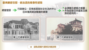 對一個從日本來臺灣的最高行政首長而言,總督官邸不僅是他行政辦公、日常起居與社交生活的中心,還是日本殖民統治階層的象徵,必須顯示總督之威嚴,另外還不時要作為迎接日本皇族及貴族的招待所。於是,一座宏偉氣派與機能完整的總督官邸於焉誕生。