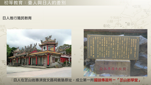 日人為了推行殖民教育,設立國語傳習所、國語學校,後來又設置小學校、公學校和教育所。小學校幾乎全為日本人子弟就讀;公學校則多為臺灣人就讀;教育所則是專為原住民而設。國語學校為日治初期的綜合教育機構,直屬於臺灣總督府。優秀的臺灣子弟從「公學校」畢業,除赴日本留學外,在島內的主要的升學管道極為有限,一是進入「國語學校」師範部,畢業後擔任公學校的教員;二是進入「臺灣總督府醫學校」,畢業後成為醫生。