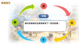 說明農業誕生的經過、種植作物的規模方式與各地區的種類,並列舉新石器時代下可反映農業生活的陶器加以介紹。
