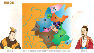 西周末年,封建禮法鬆動,周天子威權旁落。春秋初年,東遷雒邑,周平王對當時最具實力的諸侯鄭莊公不滿,於是倚重卿士虢公,引發鄭莊公不滿,周平王?平息鄭莊公的怒氣,於是將王子狐送到鄭國作為人質,而鄭國公子忽也到雒邑作人質,史稱「周鄭交質」。