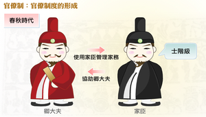 春秋時期,各國卿大夫之家漸以「家臣」以管理家族事務。家臣多為士階層出身,協助卿大夫管理各種事務,甚至在新征服的土地上,亦經常擔任「邑宰」,國君在身邊集合了有能力的人作為私臣,官僚制於焉形成,漸取代了封建時代的世卿世祿制。官僚制下文武百官的職位都是皇帝臨時任命冊封,不是世襲而來的。官員都有一定任期,領取定額俸祿。