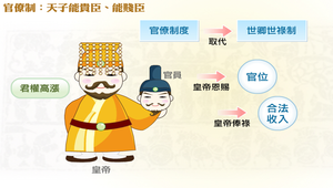 官僚制的發展進而取代世卿世祿制,所反映的就是君權的高漲;官位是皇帝賞賜,俸祿是官僚唯一的合法收入,經濟受制於皇帝。官職的任期可長可短,端看人君喜怒。官員一生貴賤榮辱全繫於君主的喜怒好惡。秦漢以來的官僚既是源自封建時代的家臣,君主與臣下的關係原先就是一種主人與奴僕的關係。所以君尊臣卑自秦漢以來歷代皆然,雖然時代愈後,隨著獨裁體制的發展,君愈尊而臣愈卑。清代的滿臣自稱奴才,其實正是臣子最古典的含義。