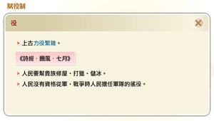 國家形成之始,統治者為了維護政權就需要向人民徵收錢財,調用勞動力。「賦」原先指軍事上車馬軍需的徵課,後來指土地、人口、資產的課稅;「役」是指政府向人民徵調的無償勞動;戰國時期,秦國商鞅變法,「廢井田、開阡陌」。春秋戰國時期,除了田稅以外,賦也產生改變。賦由原來徵收車馬等軍需品逐漸轉變為徵收軍費,徵收辦法由按地區,漸而轉變為以戶為單位,按口徵收。春秋戰國賦役制度的變遷,奠定以後兩千多年的基本型態。自秦漢以降,田租、口賦和力役成為賦役制度的主要部分。田租和力役都是以丁為對象來課徵,口賦則針對全戶人口來計算。