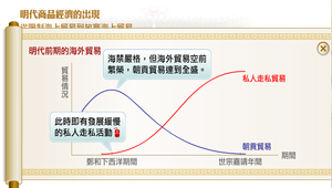 明代海外貿易,以明朝中葉嘉靖年間為界,分為前、後兩期:前期以官方壟斷的朝貢貿易為主要方式,且私人海外貿易逐漸興起;後期則是放寬海上貿易,部分的海禁解除,走私貿易更加猖獗。