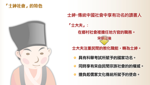 傳統中國的政治權力只達「縣」級,地方權力與鄉村社會之間,有很大的權力真空。而這樣的權力真空正是由地方士紳們所填補,形成一個兼具官方色彩與自治性質的士紳社會。也由於環境的因素,因此豪紳子弟透過科舉制度成為士紳的比例遠遠大於佃農階層的子弟,使得這些菁英分子不論在朝為官或是下野鄉居,均享有極大的特權。