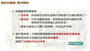 英國國會為中國查禁鴉片展開激辯,反對者認為再也沒有比為鴉片而戰更不正義的戰爭了;贊成者則巧妙地操縱輿論,把焦點變成如何擔保未來貿易的平安與英國公民的安全。最後主戰派以九票之差險勝,決定出兵中國。鴉片戰爭後,中國與周遭國家的傳統朝貢制度逐漸崩潰,開始走向西方列強所主導的條約體制,揭開了中國近代史的序幕。