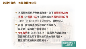 英國擊敗西班牙無敵艦隊後,為了擴展對東方的貿易,於西元1600年在倫敦成立英國東印度公司(British East India Company, 簡稱BEIC)宗旨是為聯合在東南亞經商的英國商人,與荷蘭、法國進行商業競爭。