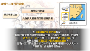 中英鴉片戰爭以後,廢除中國對外貿易中的公行制度,允許英國商人在各口岸任意與華商交易。道光二十三年(1843年)七月初一日,廣州在新闢五個口岸中首先被開放通商,原有十三行於咸豐六年在廣州西關一次大火中被毀,此後不復存在。