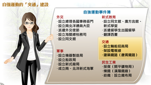 自強運動在交通方面的建設,包括設立輪船招商局、架設電報線與建築鐵路等。