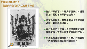 袁世凱一方面派北洋軍南下,以軍力奪回漢口、漢陽兩地,壓迫革命軍與他談判。一方面則假革命軍勢力,並暗中要求北洋軍屯兵不前,藉此要脅清廷。結好北京的公使團,促使公使團支持袁掌握大權,並進行君主立憲制的改革。利用辛亥革命的機會,在北方控制大局,展開與南方談判的事宜。
