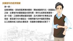 從晚清開始,因為西風東漸的關係,開始推動現代化。民國建立之後,主要城市的基礎建設也更充實,現代化成果逐漸展現。另一方面,工商業也開始蓬勃發展,且大多集中於東南沿海各省,甚至銀行也大量設立。