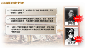 蔣介石經過一段時間的審時度勢後,同意宋慶齡、宋子文姊弟全權代表他與張學良、楊虎城和中共代表周恩來進行交涉、談判。左傾的宋慶齡一反過去對蔣介石的嫌隙,強力央求張學良以大局為重,儘速釋放蔣。