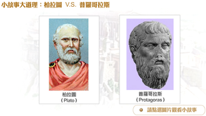 介紹古希臘哲學家柏拉圖和詭辯學家普羅哥拉斯的故事,作為課堂上互動討論的素材。