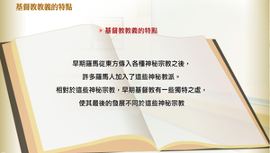 基督教堅持猶太人的一神論傳統,比當時流行的其他宗教更明確的提供一個具體的起源。此外,基督教所傳授的教義極富感染力,其教義宣導,只要相信,就有機會獲得救贖;另一方面,在教義上,對於上帝的存在、三位一體等內容,又極其晦澀難解,因此,既能吸引下層平民,也逐漸吸引羅馬帝國中的知識分子。
